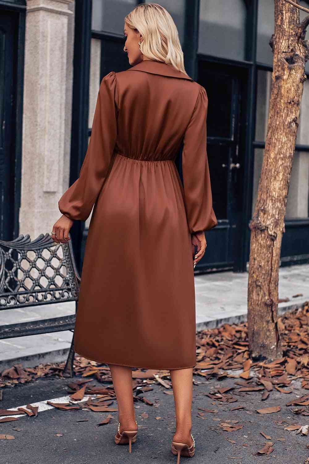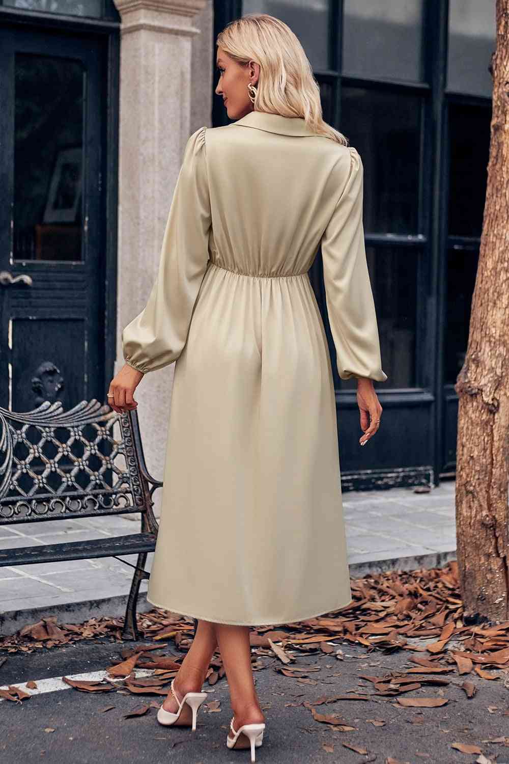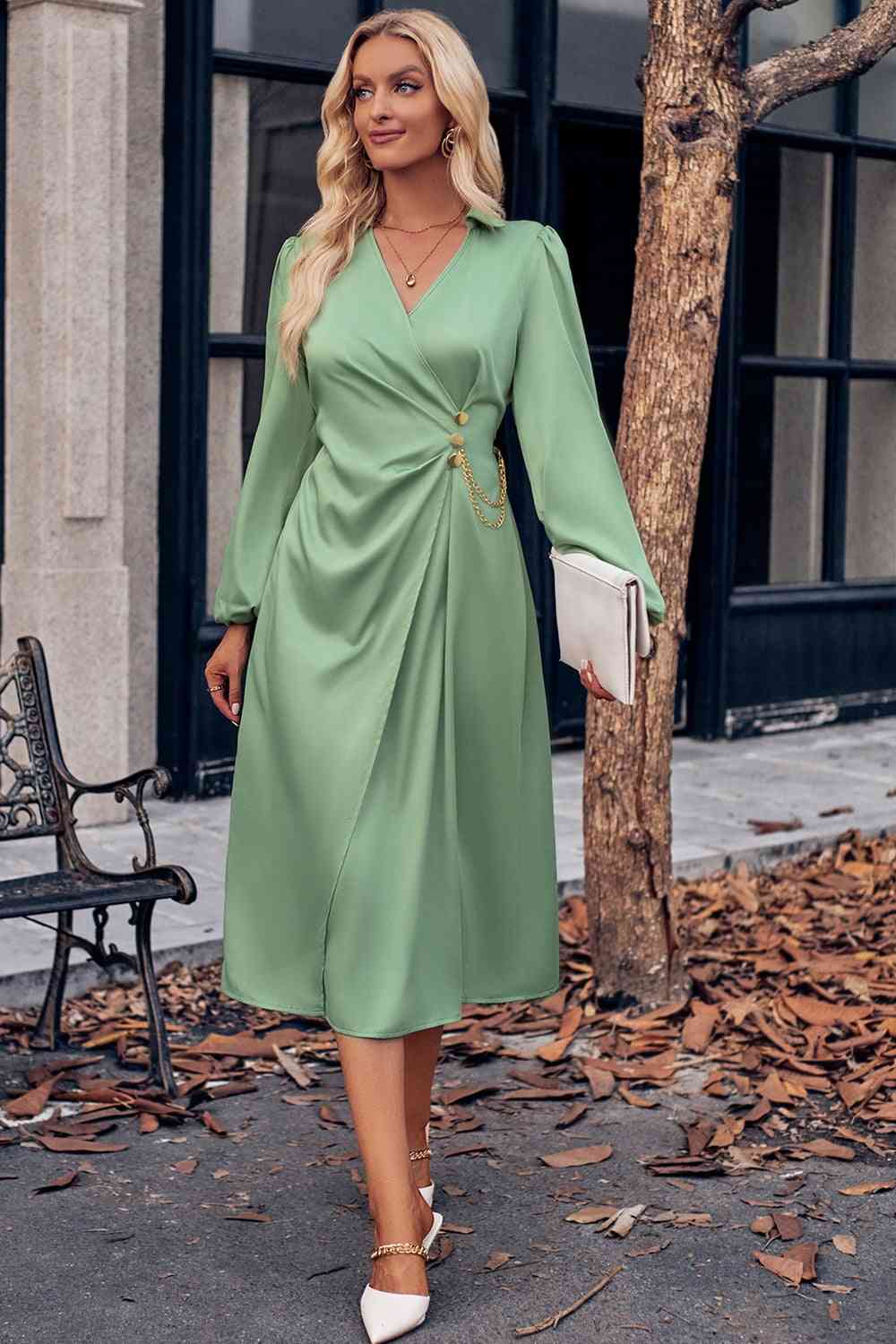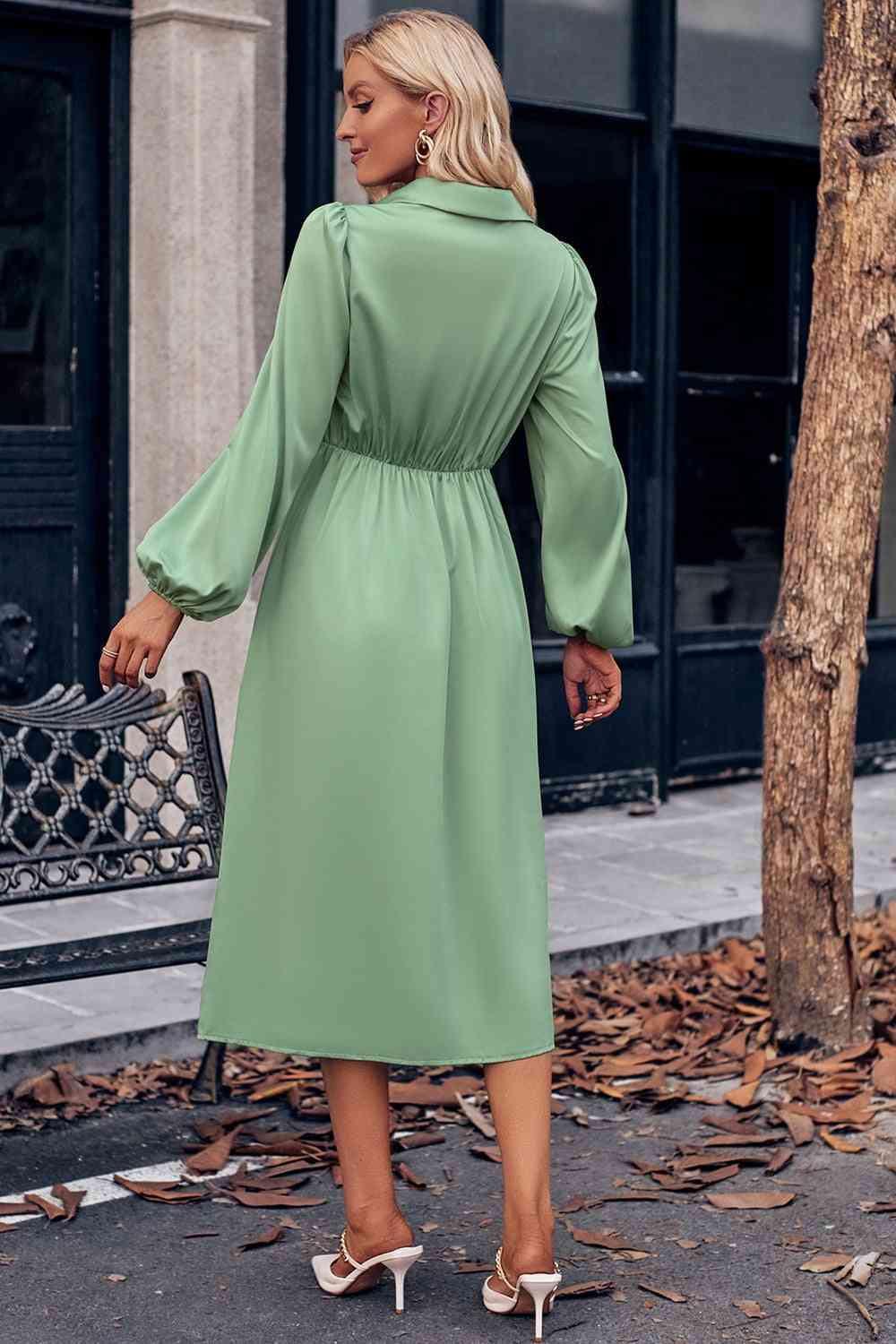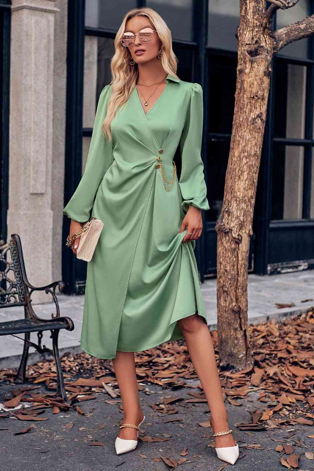 Surplice Neck Puff Sleeve Midi Dress